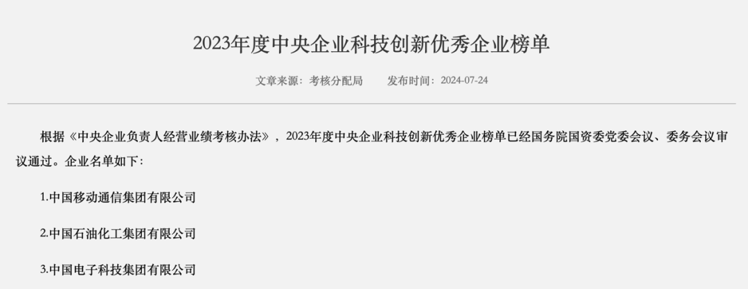C114讯 7月24日消息(南山)据来自国资委考核分配局的信息显示,根据《中央企业负责人经营业绩考核办法》炒股配资行情,2023年度中央企业科技创新优秀企业榜单已经国务院国资委党委会议、委务会议审议通过。
